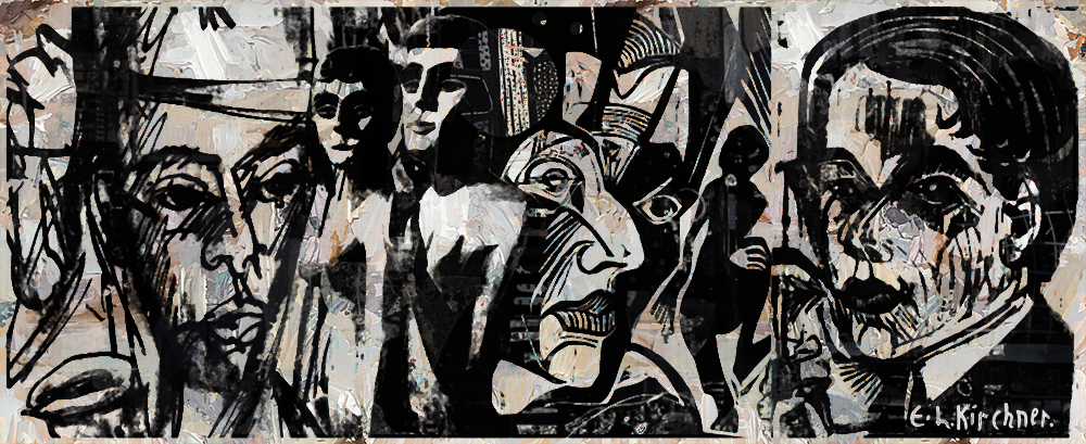 3 Selbstportait Holzschnitte und 2 Statuen zusammengefasst